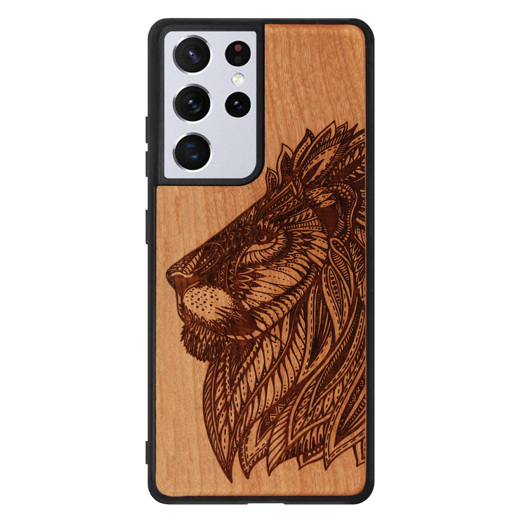 Lion Eden Case made with Cherry Wood for the Samsung Galaxy S21 Ultra